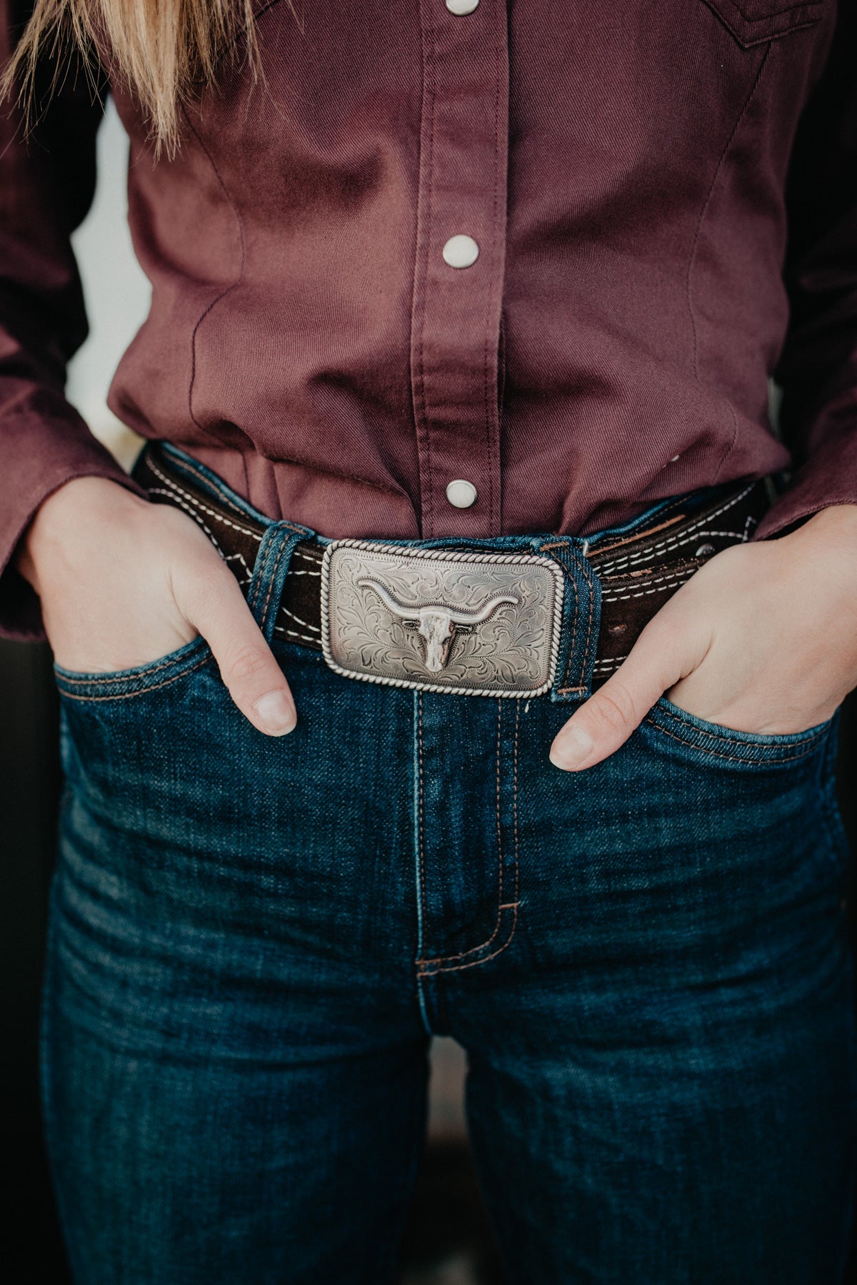 This rectangular buckle has a stunning rope boarder encasing a longhorn head. Very simple buckle will pair nicely with any jean and shirt combo you put it with!