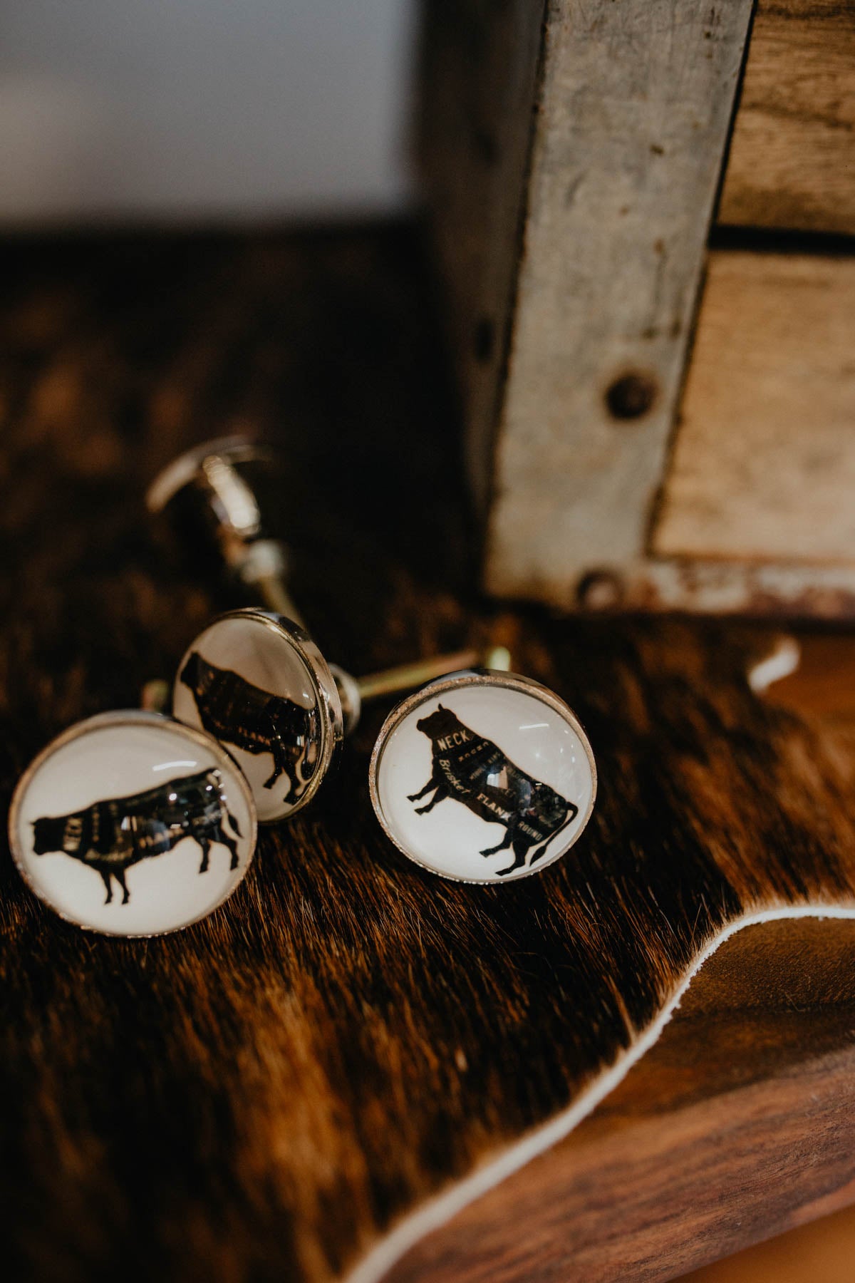 Customize your furniture and cabinets to have a western flair! Easy to install, these ceramic beef cuts draw pulls are a fun and easy addition to update your space.