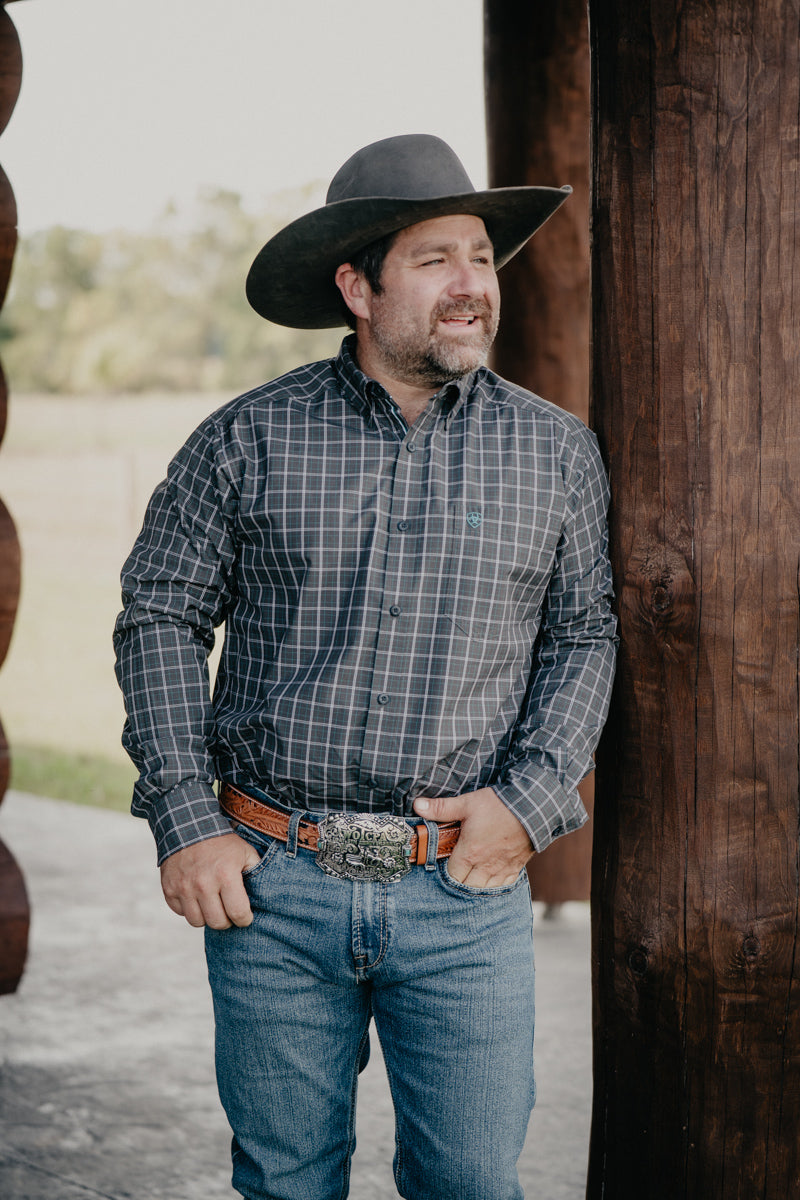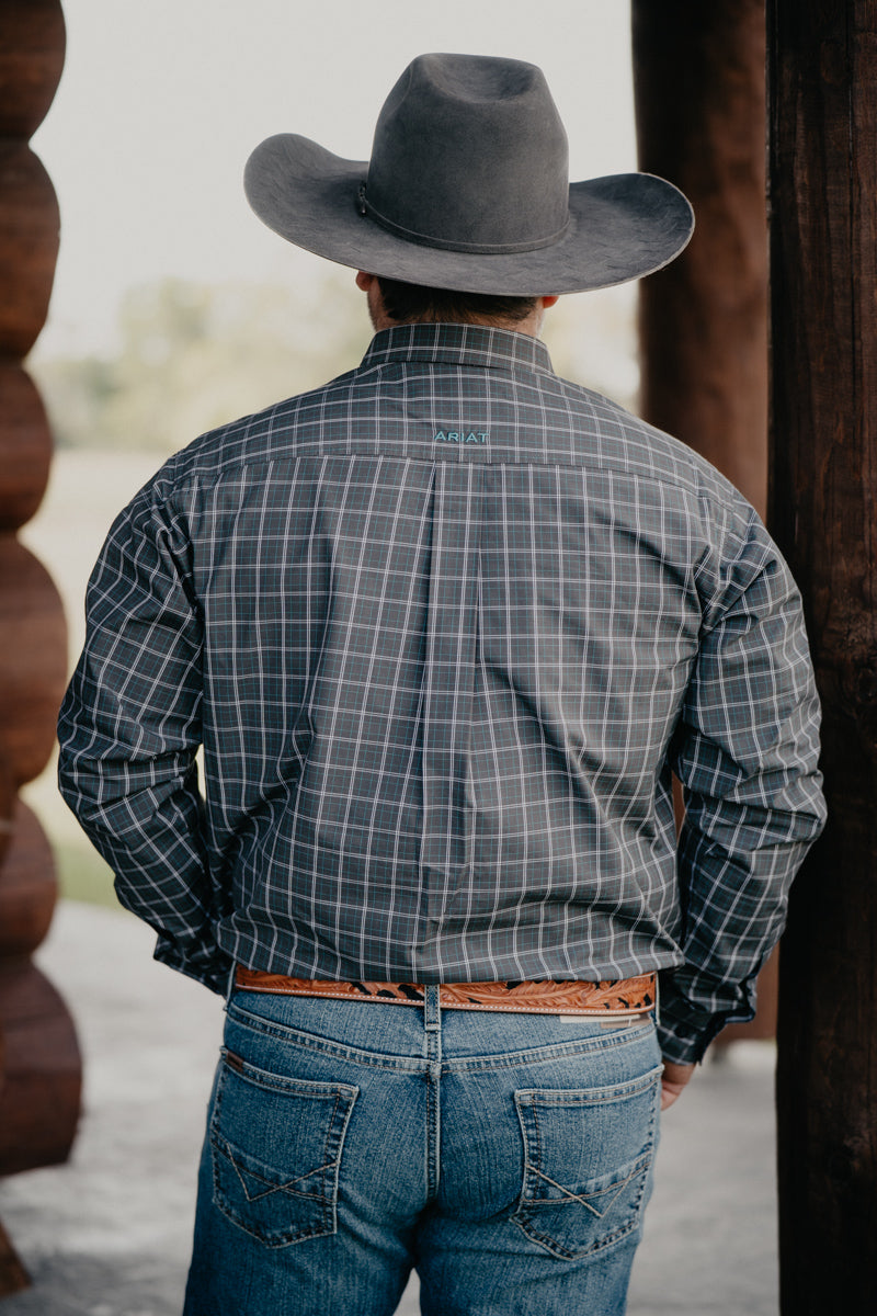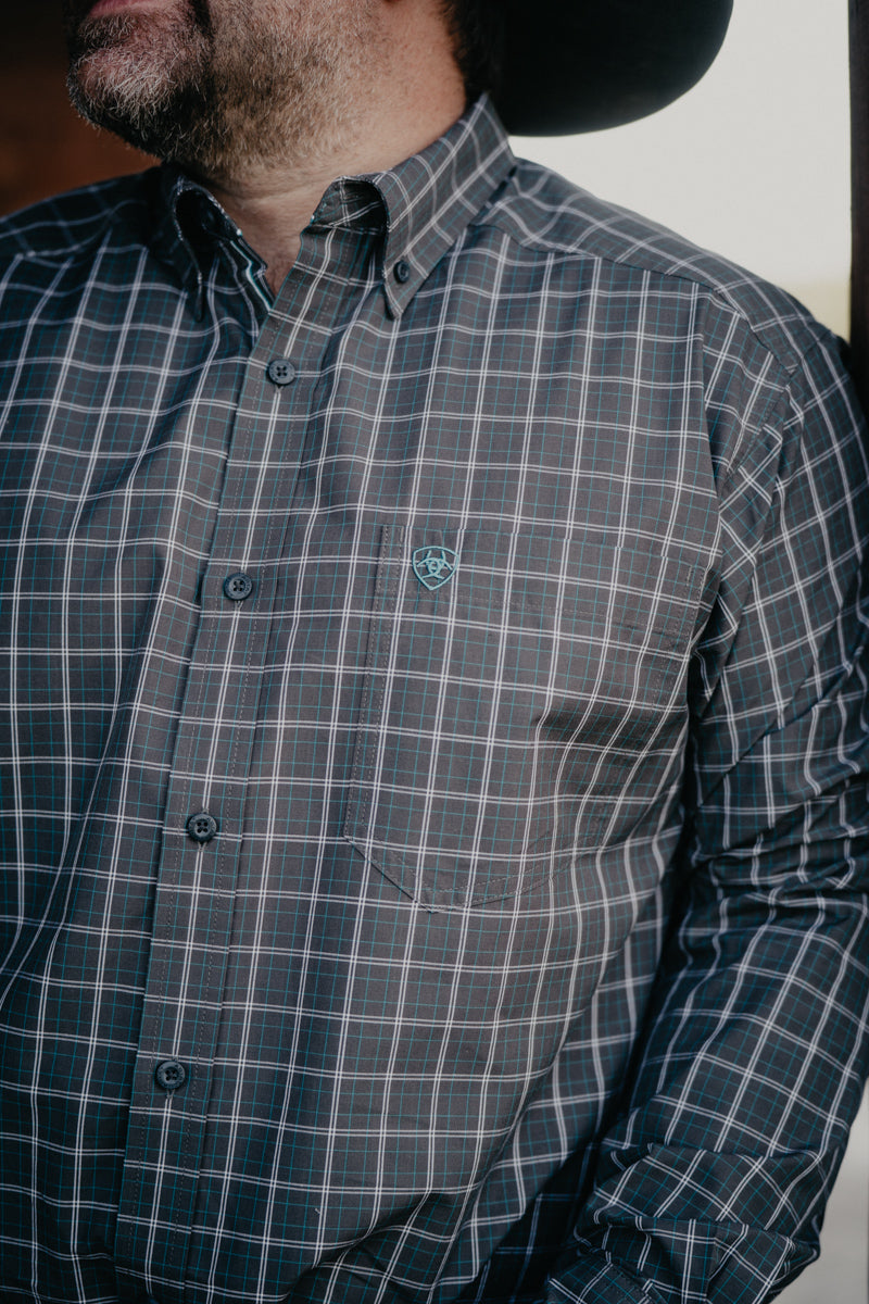 This Ariat Pro Series Shirt is the perfect shirt for daily wear or in the saddle. The classic plaid has a subtle teal contrast. Giving a perfect crisp and stylish look for any event. The extended body length and sleeve length is great for any movement.