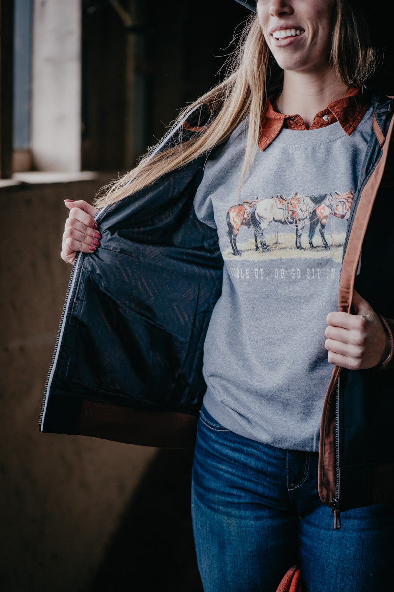 Crafted from smooth fabric with a mid-fall weight, it delivers comfortable layering without bulk. Rib knit hems and cuffs ensure a secure fit while zippered pockets provide secure storage. The jacket features a full zip front with hood and a durable water resistant finish for protection against the elements. Enhanced with subtle CINCH logo embroidery, this jacket offers expert grade performance and refined aesthetics for versatile seasonal wear. Available in two sleek colour options, this ladies 'Brandi' jacket is a favourite for the Fall and Spring seasons!