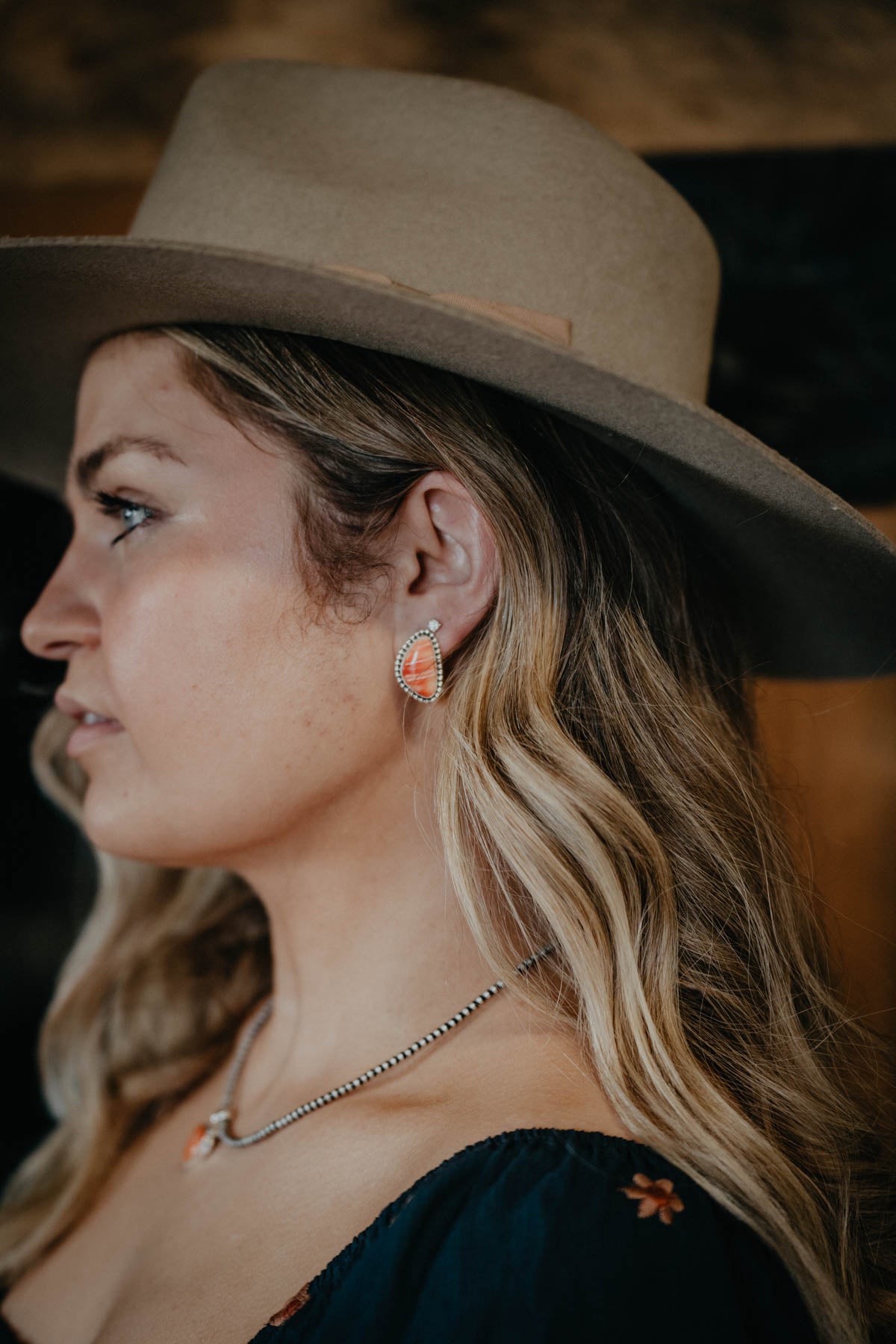 - Genuine coral stone and sterling silver setting and post