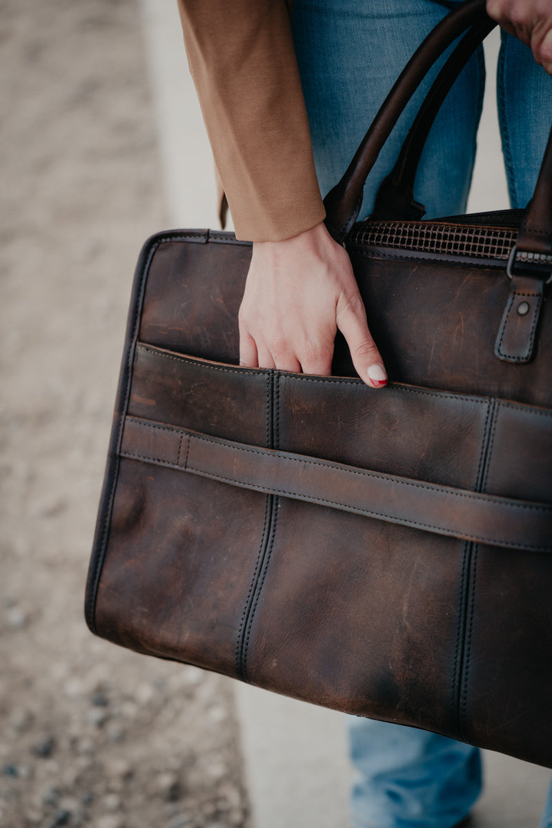 Combine rugged durability with western style and comfort on the go with the Cowhide Pet Carrier by STS Ranchwear. Crafted from premium cowhide and leather, this western-inspired carrier offers a sturdy yet comfortable space for your pet during travel. Its unique design ensures your pet stays secure while you showcase a classic, timeless look. Rolling suitcase handle sleeve offers easy transportation.