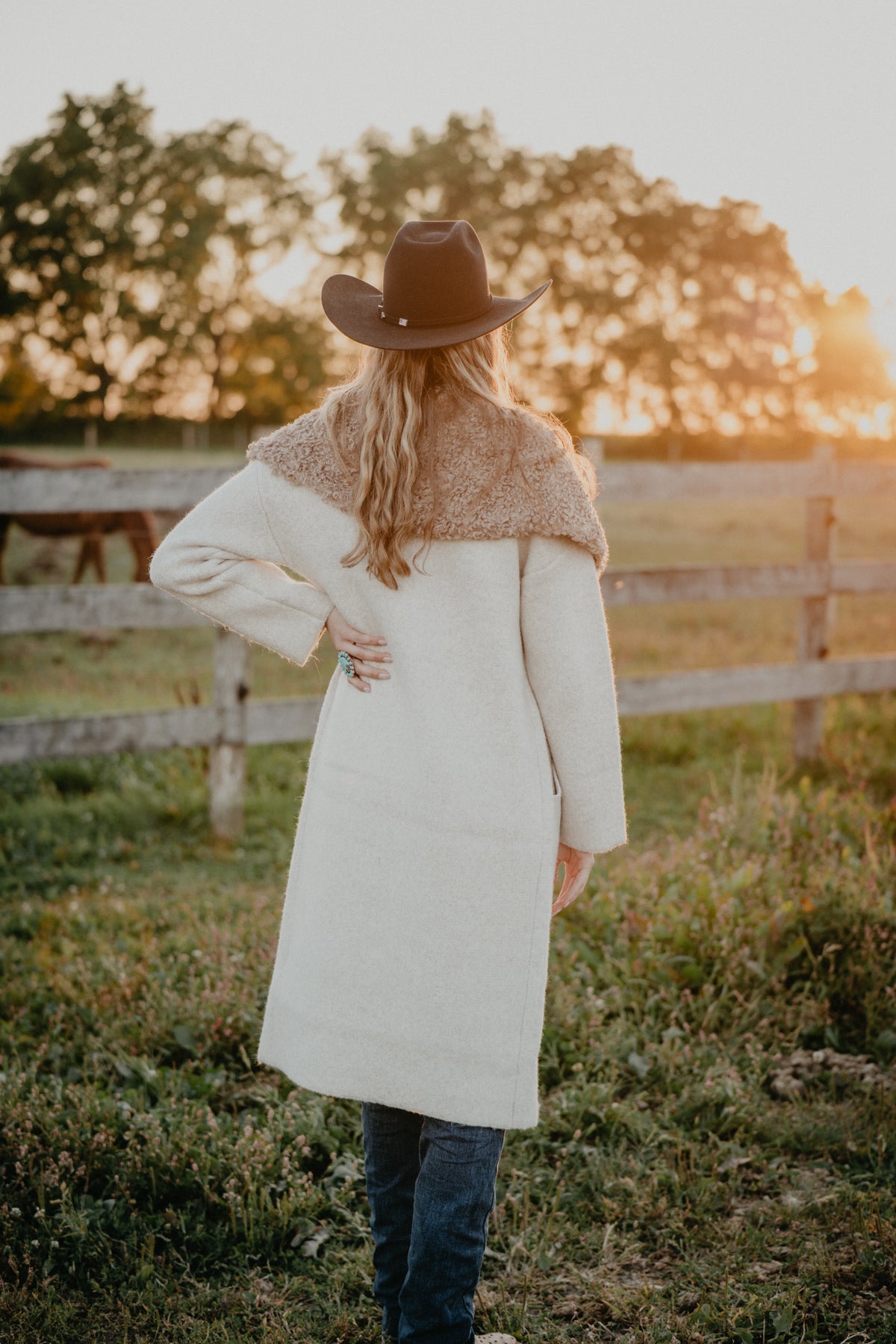 'Dakota' Oatmeal Duster Coat with Faux Fur Oversized Collar (XS-L)
