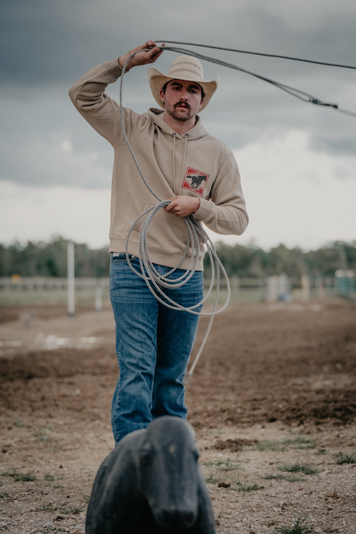 Built for cooler days and tougher wear, the 'Deltorro' delivers comfort with western backbone. The cream base sets the stage for bold graphics - a powerful horse design stamped across the chest, and the Wrangler logo on the back framed with a hard-hitting red border. Finished with a drawstring hood and kangaroo pocket, it’s a layer that works as hard as you do.