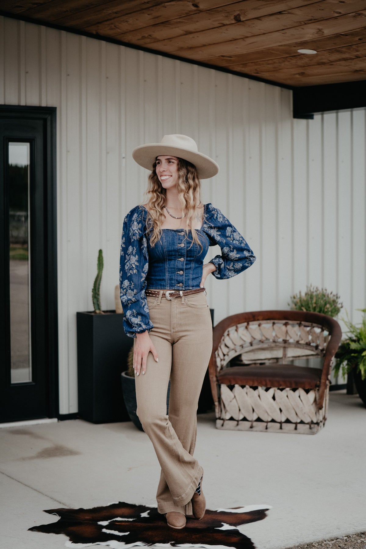 Paired with our 'Emmie' Wrangler Tan High Rise Trouser Jean.