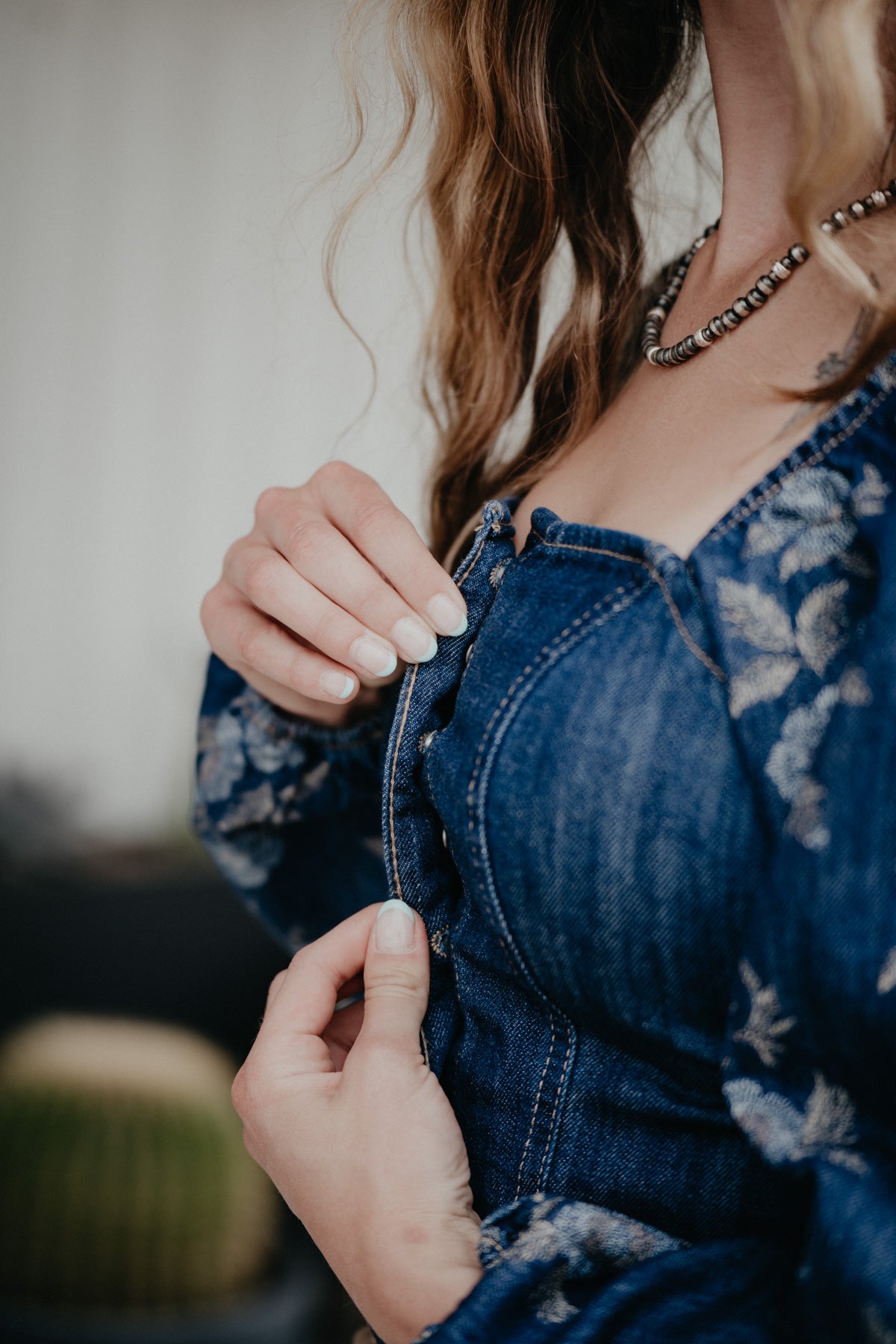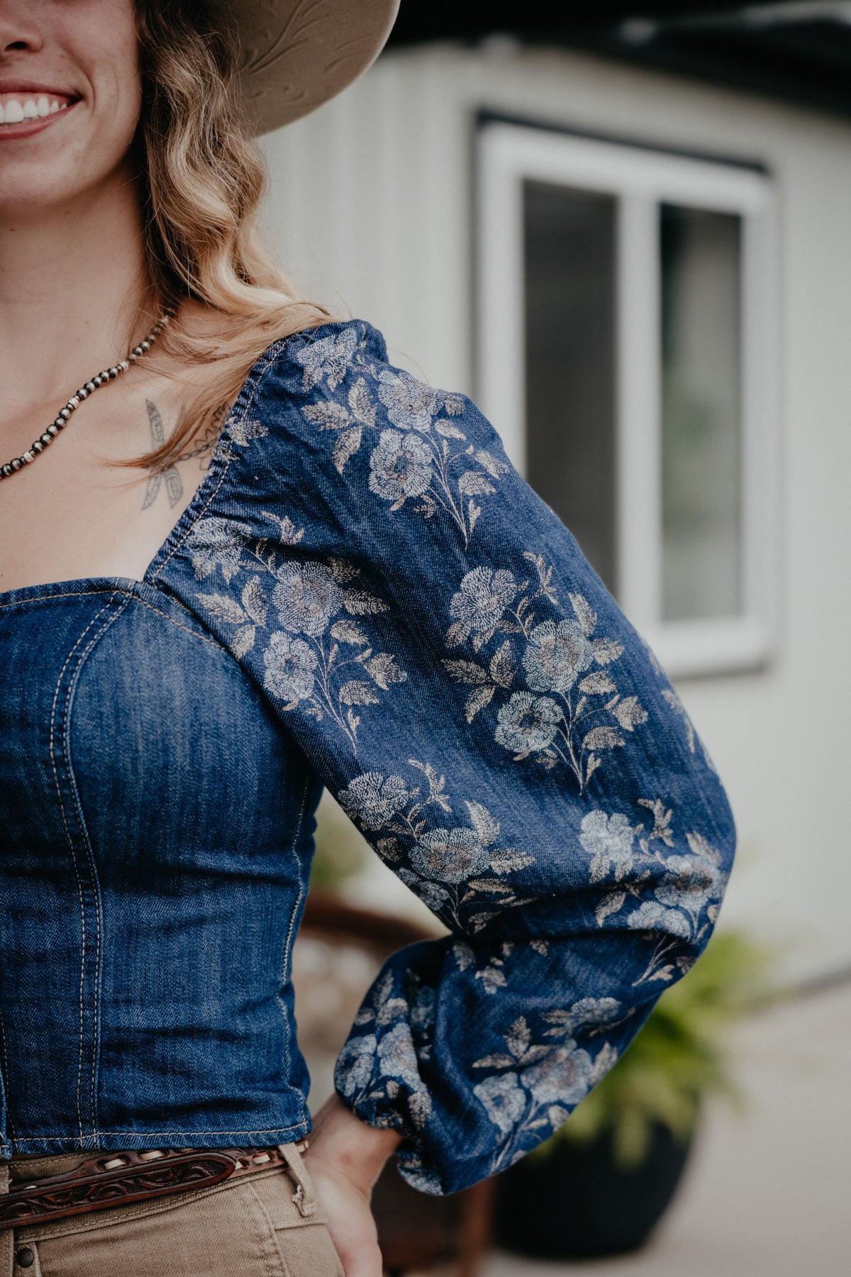 'Frances' Wrangler Denim Cropped Blouse (S-XL)
