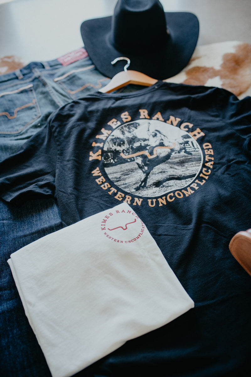 Kimes has done it again with this Graphic t-shirt. This 'Western Uncomplicated' T-Shirt comes in two colourways: black and white! From the simple Kimes chest logo to the big back graphic, this shirt is another great addition to your Graphic T-shirt collection!