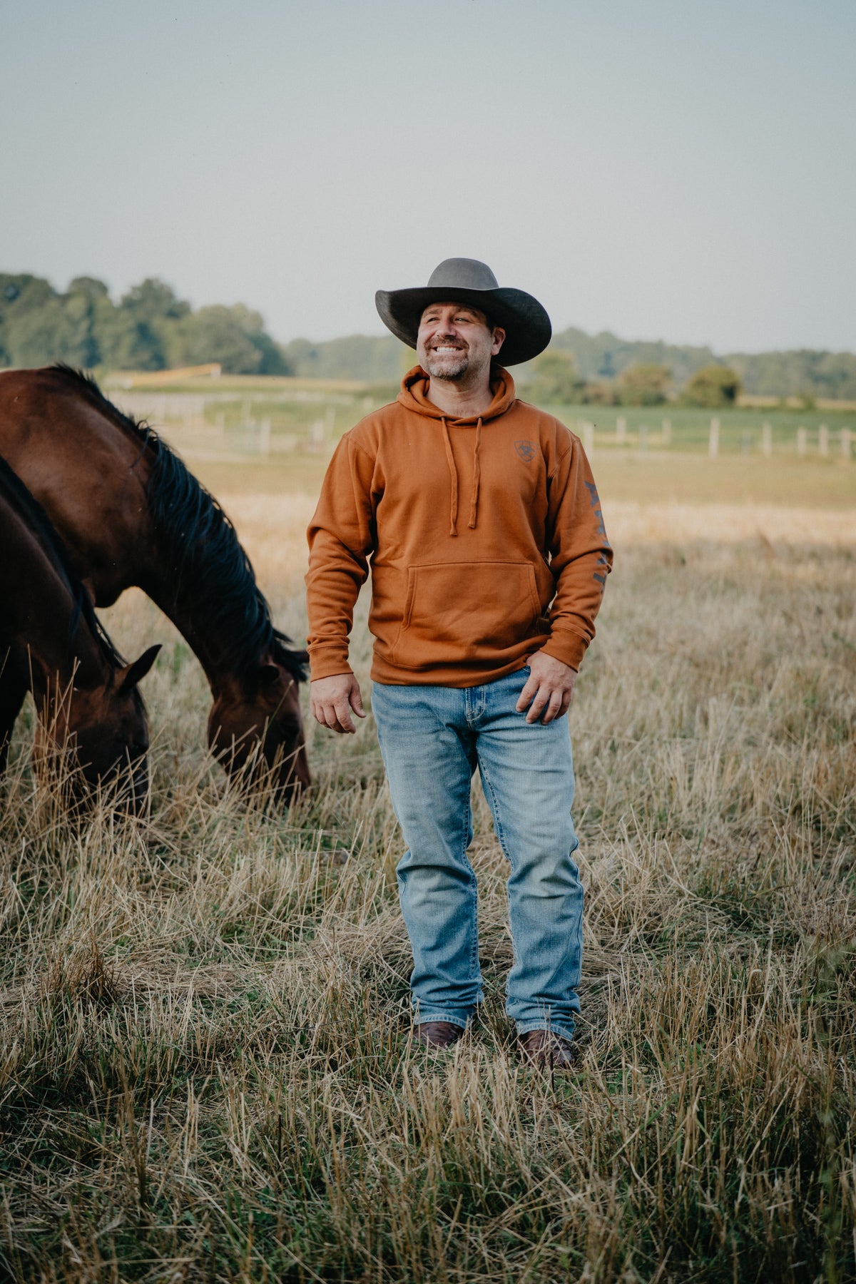 Easy comfort with a dose of western grit. This Ariat hoodie comes in a rugged ginger orange colour that’s made for the fall season. With a drawstring hood, kangaroo pocket, ribbed cuffs and hem, and Ariat logo on the sleeve, it’s the kind of no-fuss layer that works just as well in the barn, on the road, or around the fire after a long day.