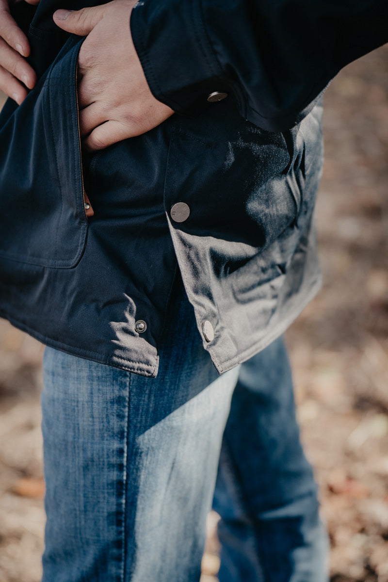 Meet the 'Johnson' Black Men's CINCH Barn Coat—a versatile classic ready for chores, riding, or whatever your day demands. Its soft, water-repellent exterior shields you from the elements, while the cozy plaid interior lining keeps things warm and inviting. Featuring tan corduroy accents, a removable hood, and a thicker body for extra durability, this sharp black coat is as easy to throw on as it is stylish. Whether working hard or kicking back, comfort and function go hand in hand here!