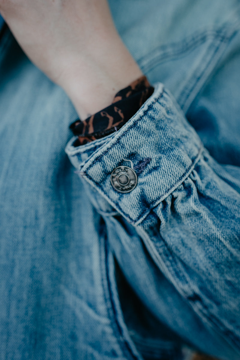 Canadian tuxedo lovers this 'Kass' Denim Bomber Jacket by Ariat is calling your name! This simple light wash denim with western flair smile pockets and pointed yoke makes this jacket the perfect addition to your layering wardrobe. This jacket comes with a dropped shoulder, puff Sleeves and a fitted hem perfect for pairing with your favourite jeans!
