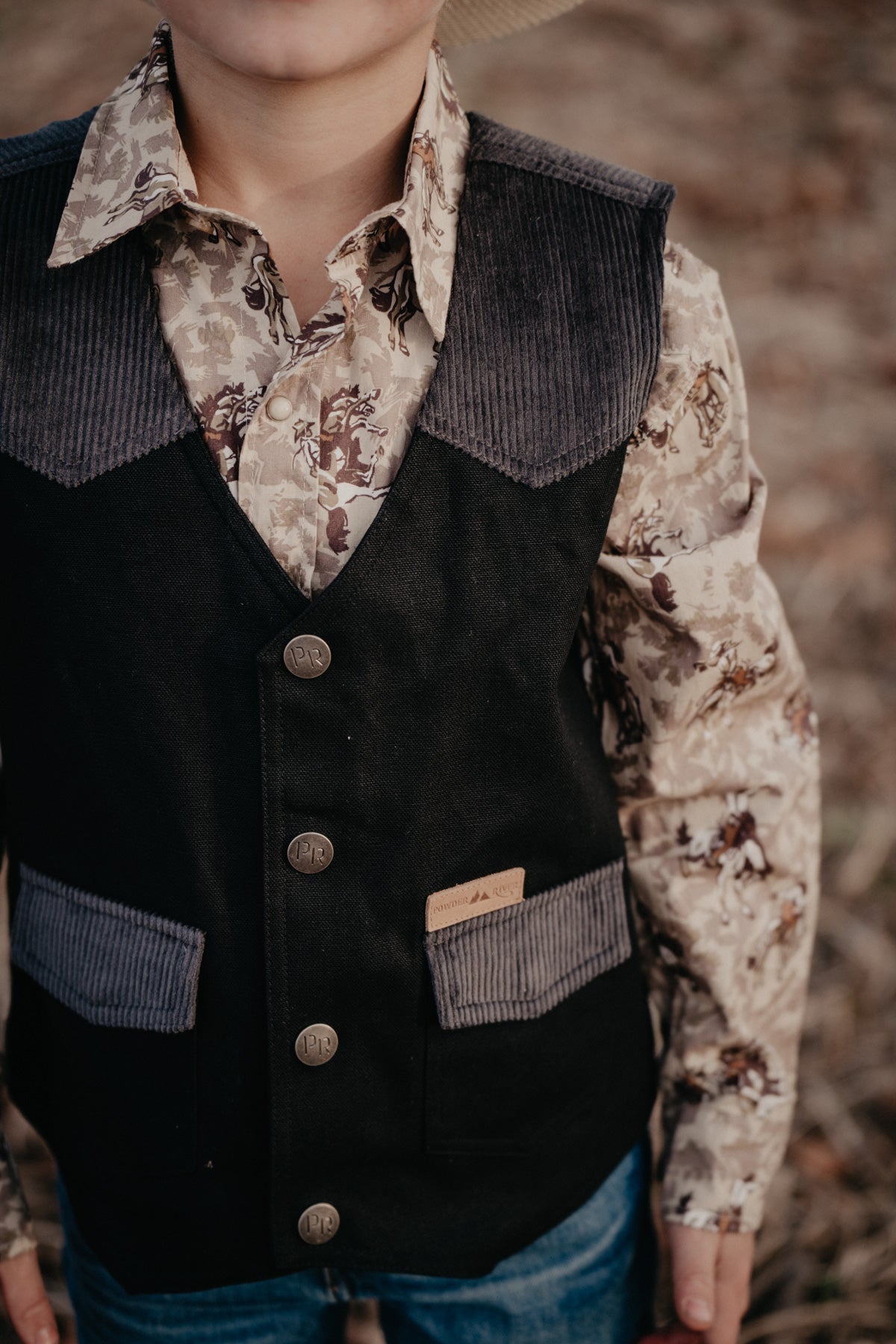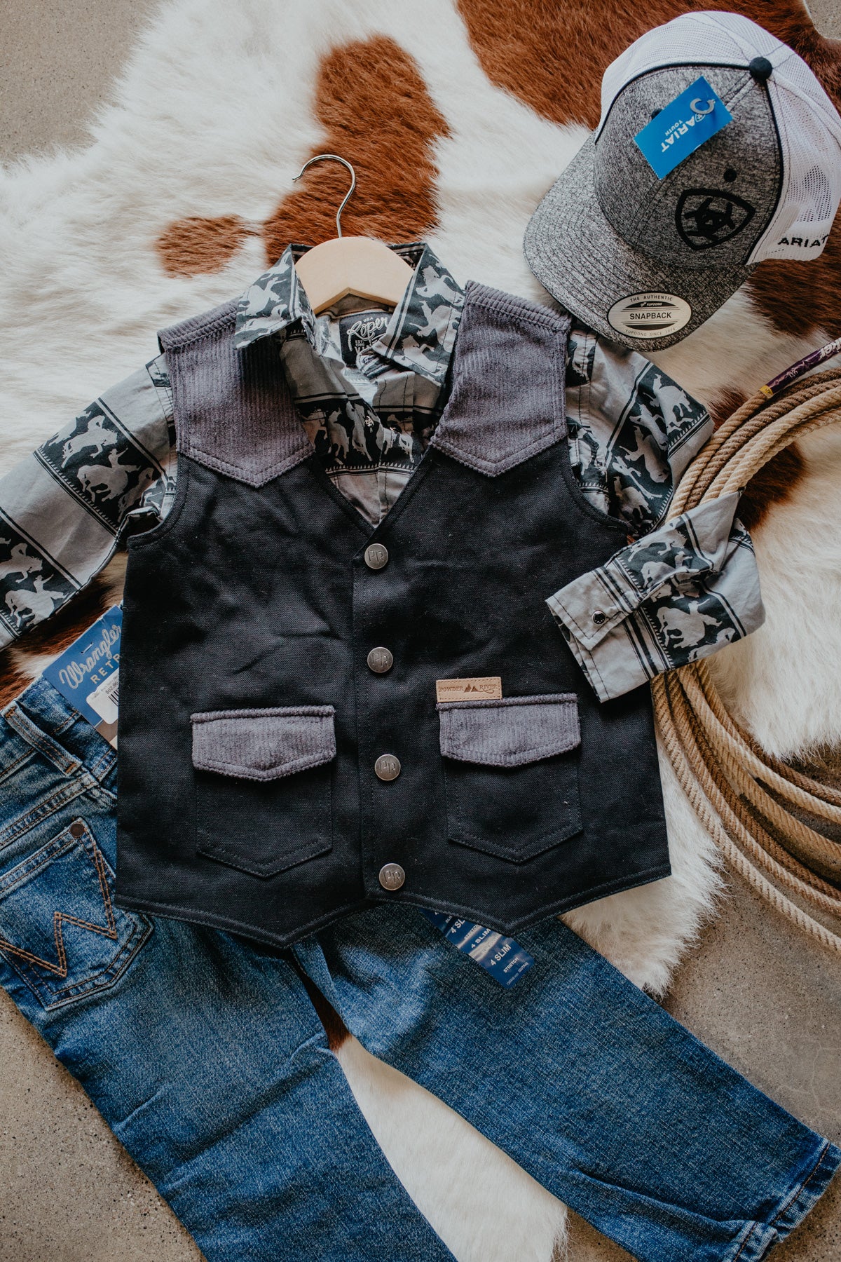 Your little cowboy or cowgirl needs this adorable AND durable canvas vest from Powder River Outfitters! Perfect for layering over any of the pearl snaps in their closet, this vest is a practical add to their wardrobe we know they'll love!