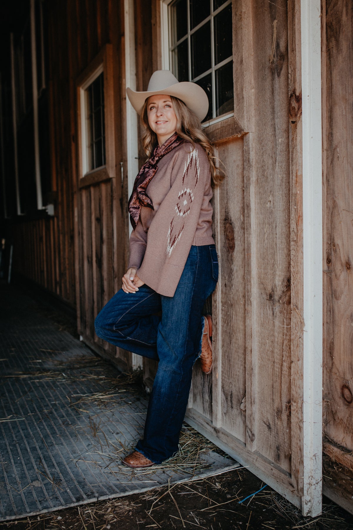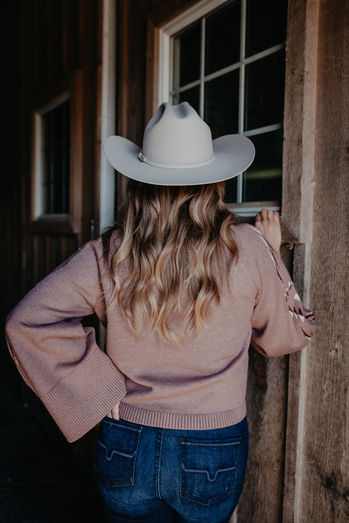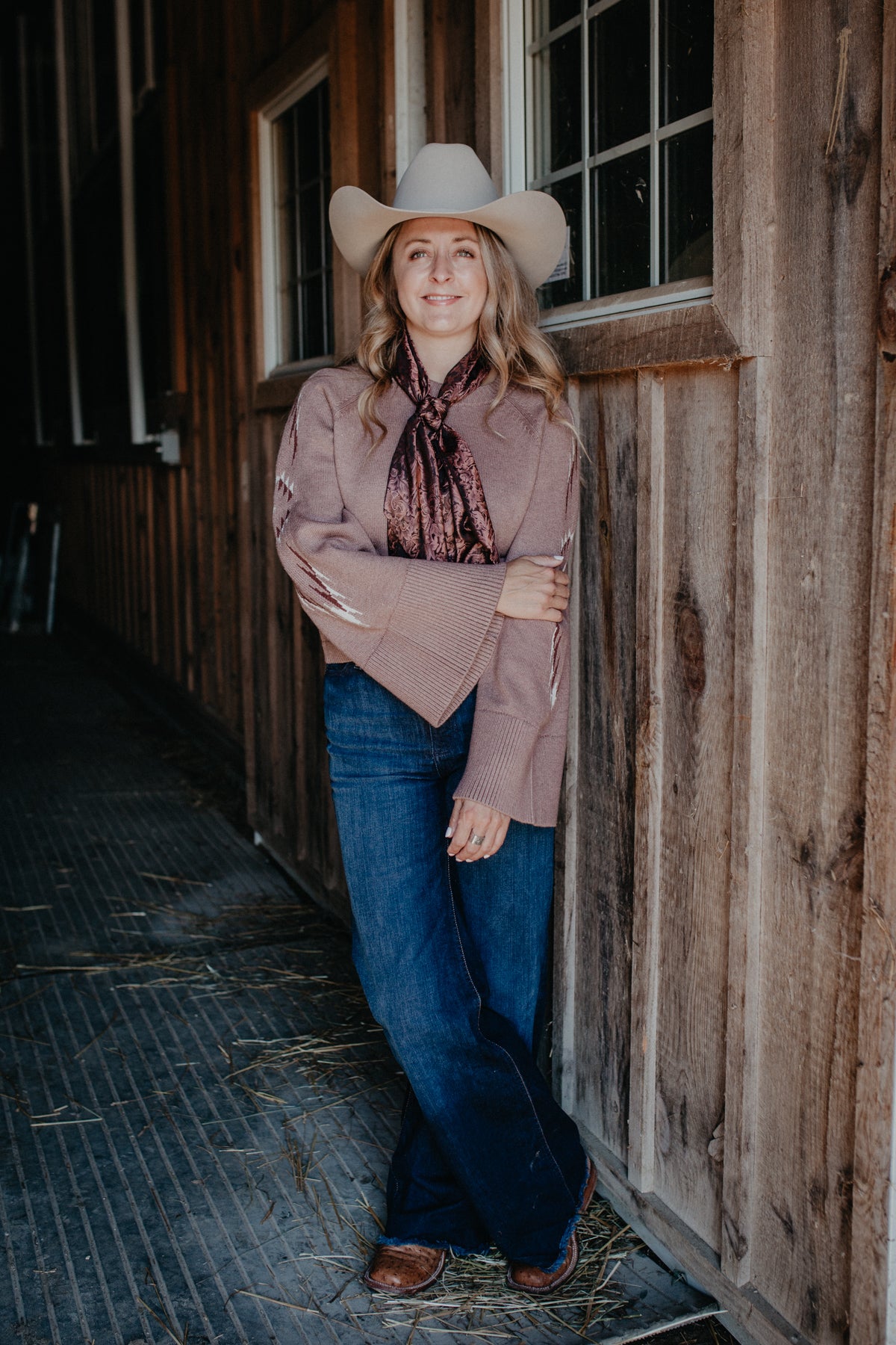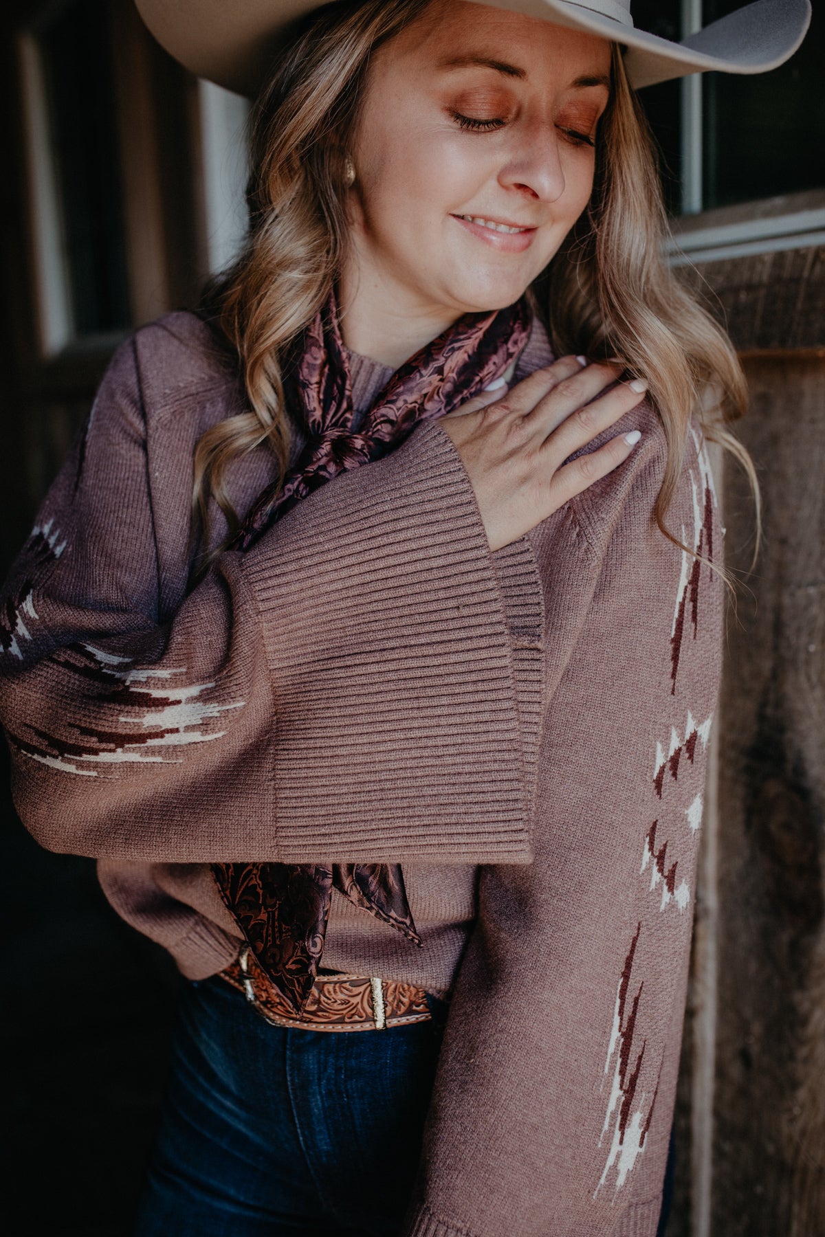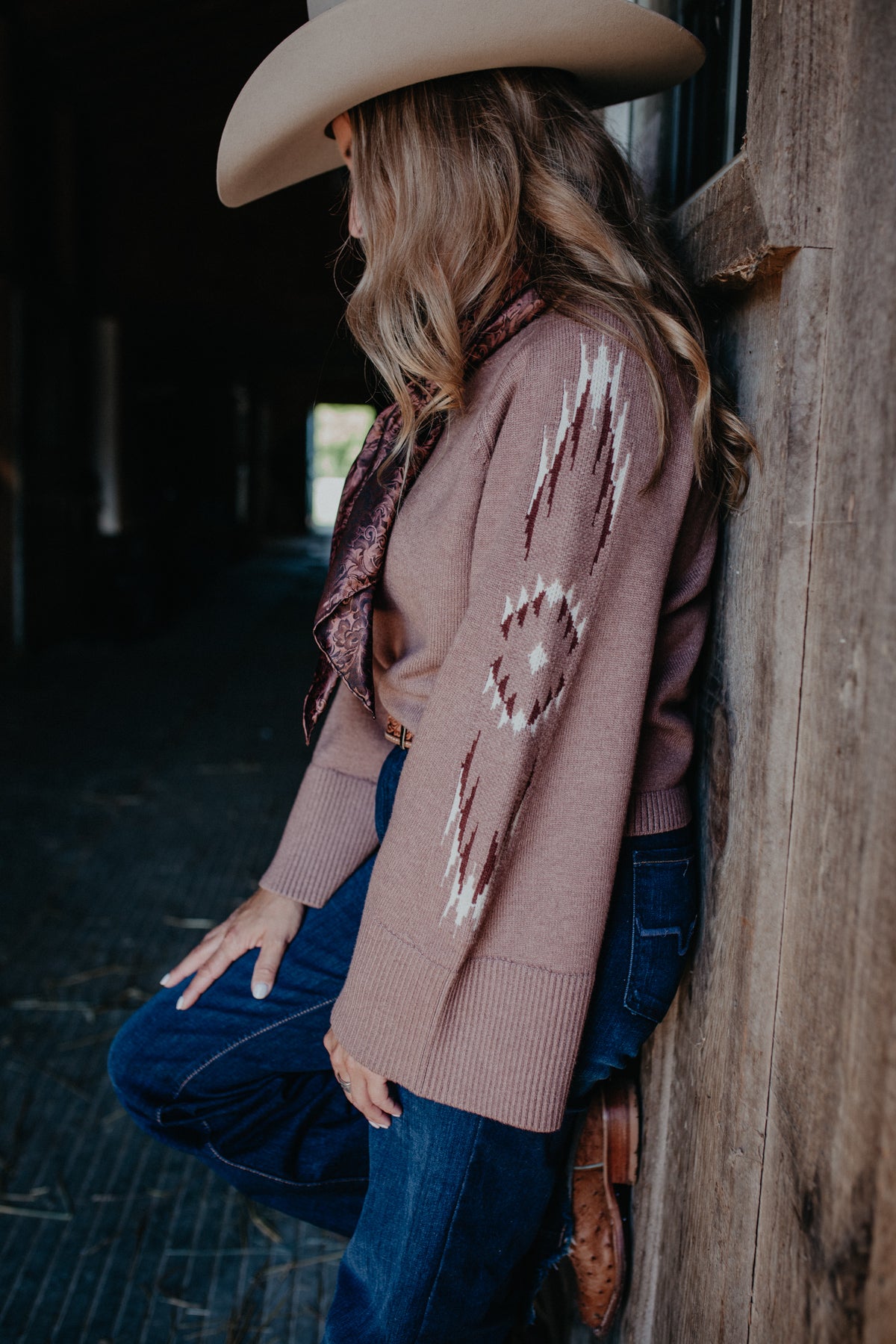 A classic knit sweater with a fun southwestern inspired twist with the wide, aztec sleeves, this raglan sleeve crewneck knit is such a fun piece to add to your wardrobe! We picture this sweater paired with either your favourite pair of denim trousers for a comfortable yet still classy day outfit, or with midi skirt skirt and boots for the perfect look for a date night on the town!