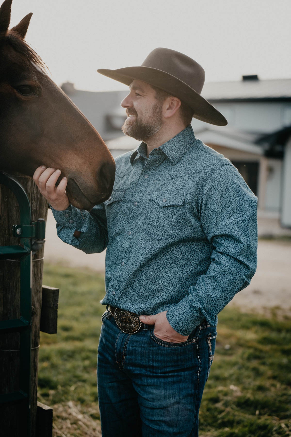 Sizing tips: Sizing runs true. Slimmer fitting through the body than a George Strait Shirt. Phil is shown wearing his usual size M.
