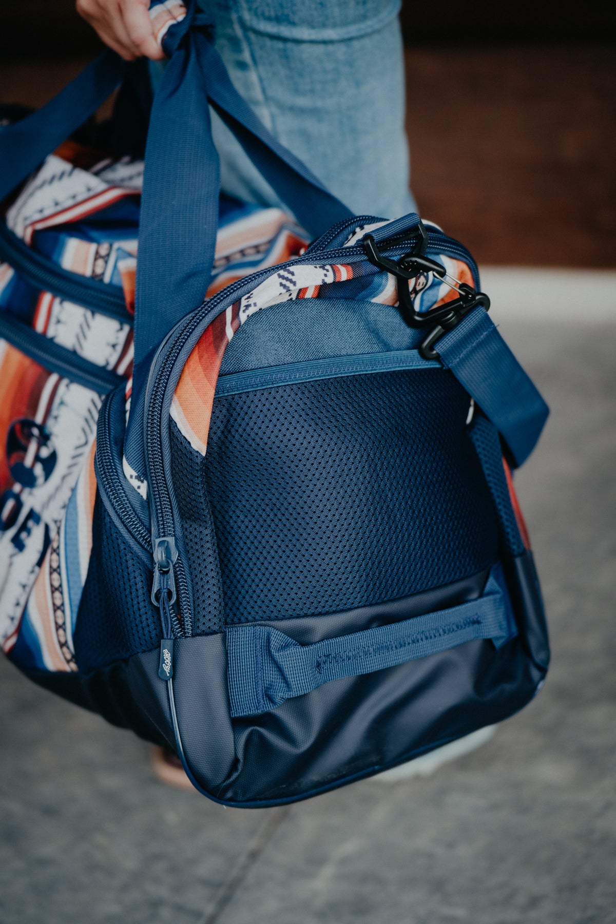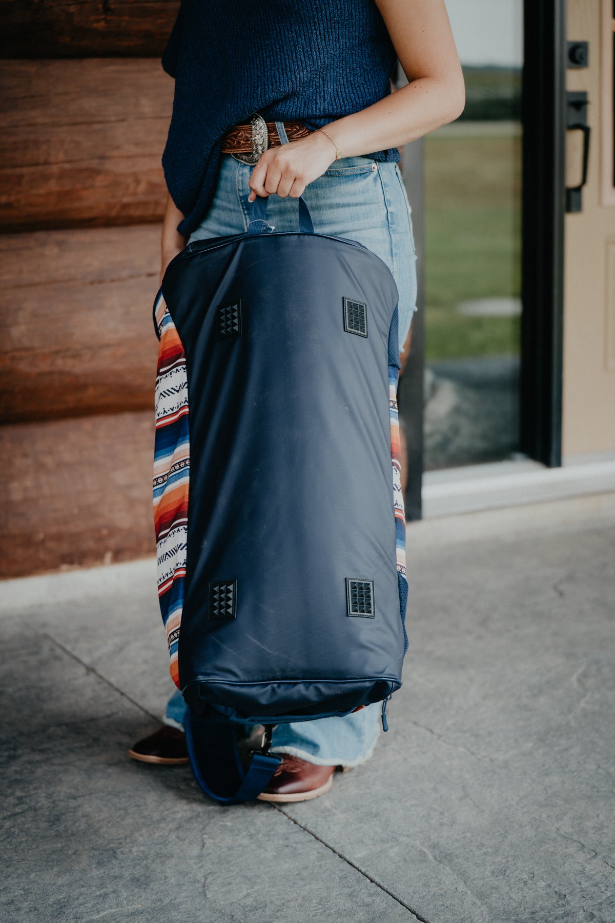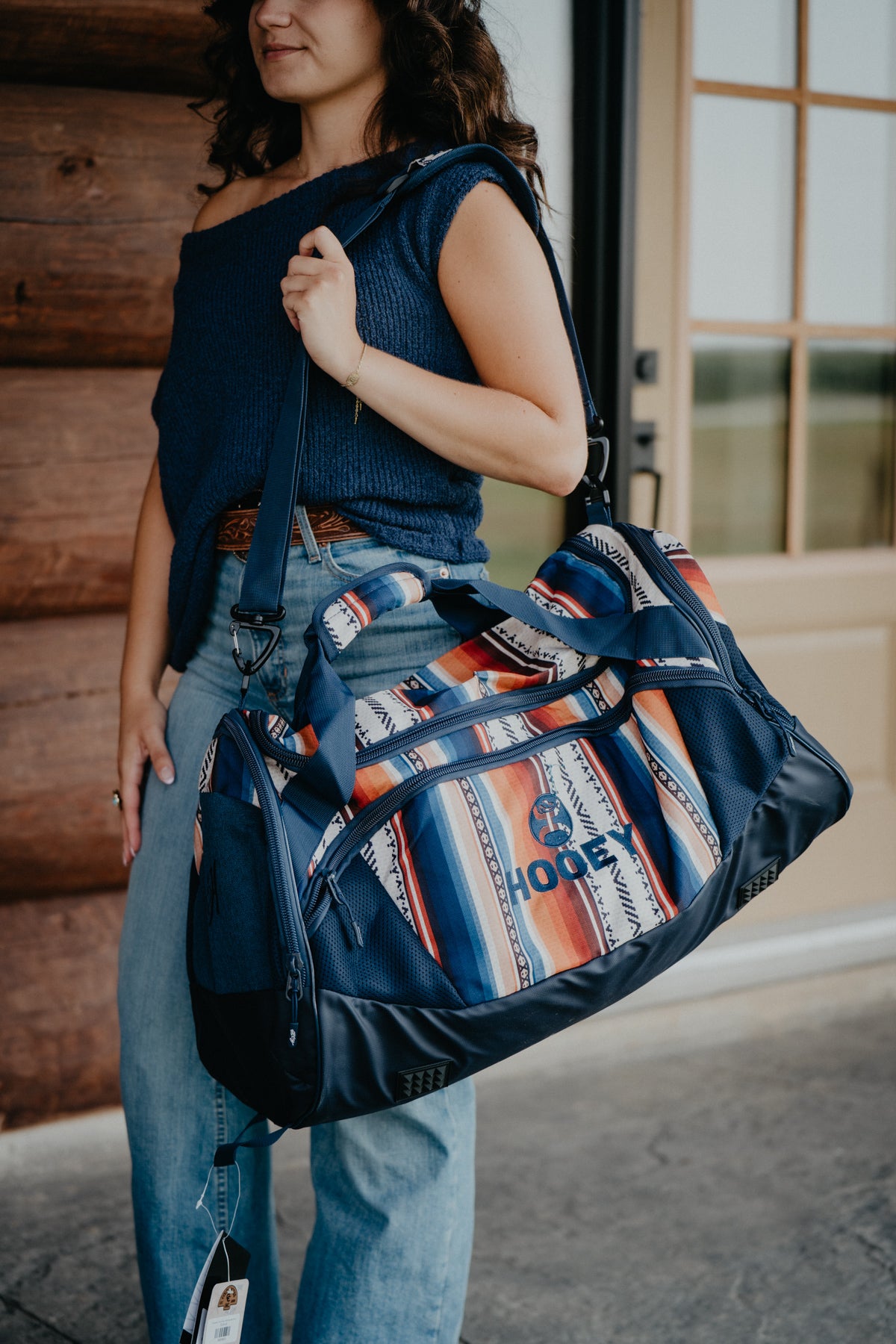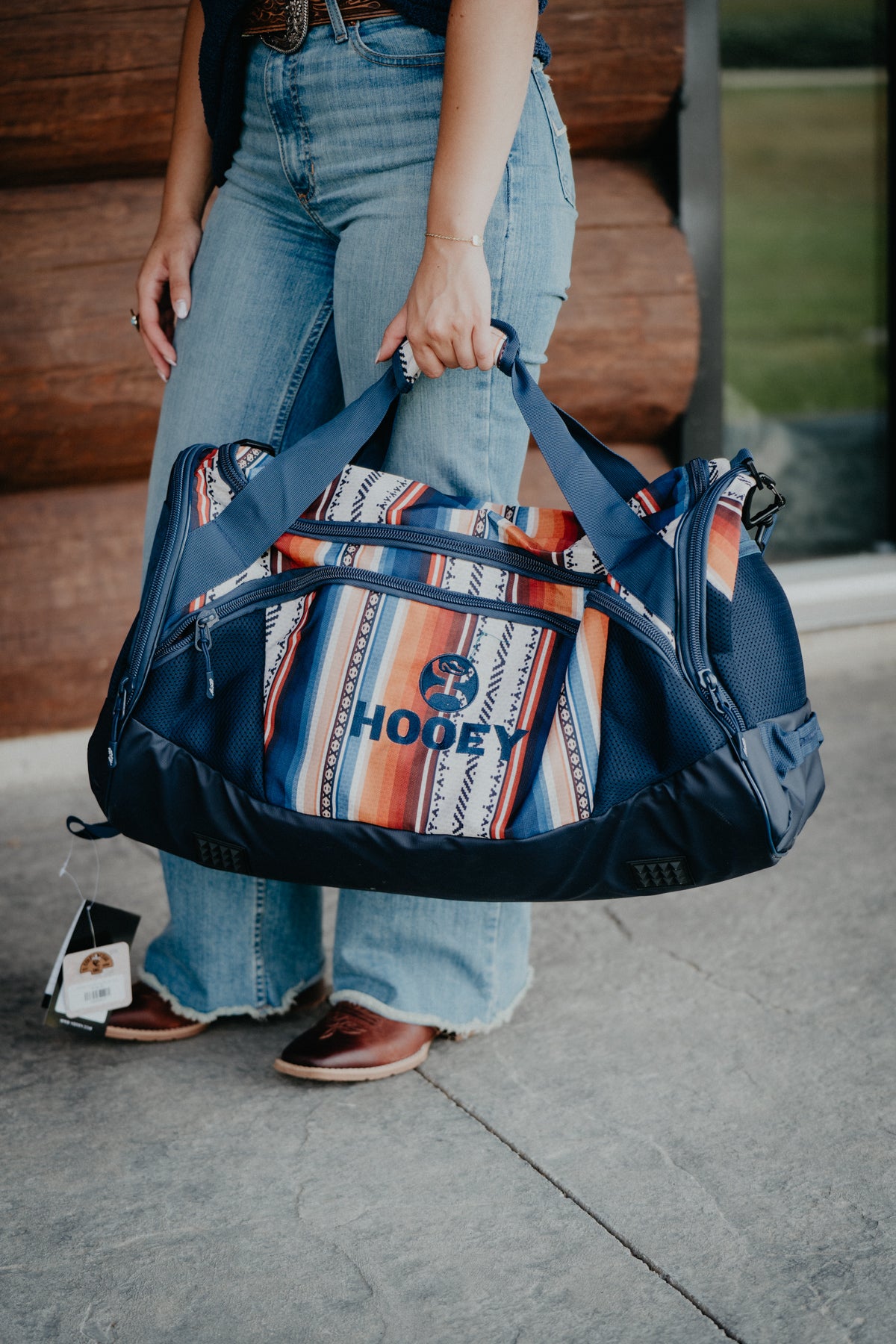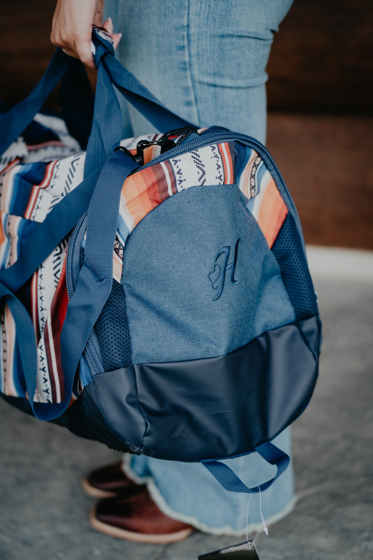 'Competitor' Hooey Navy Duffle Bag with Serape Pattern Accents