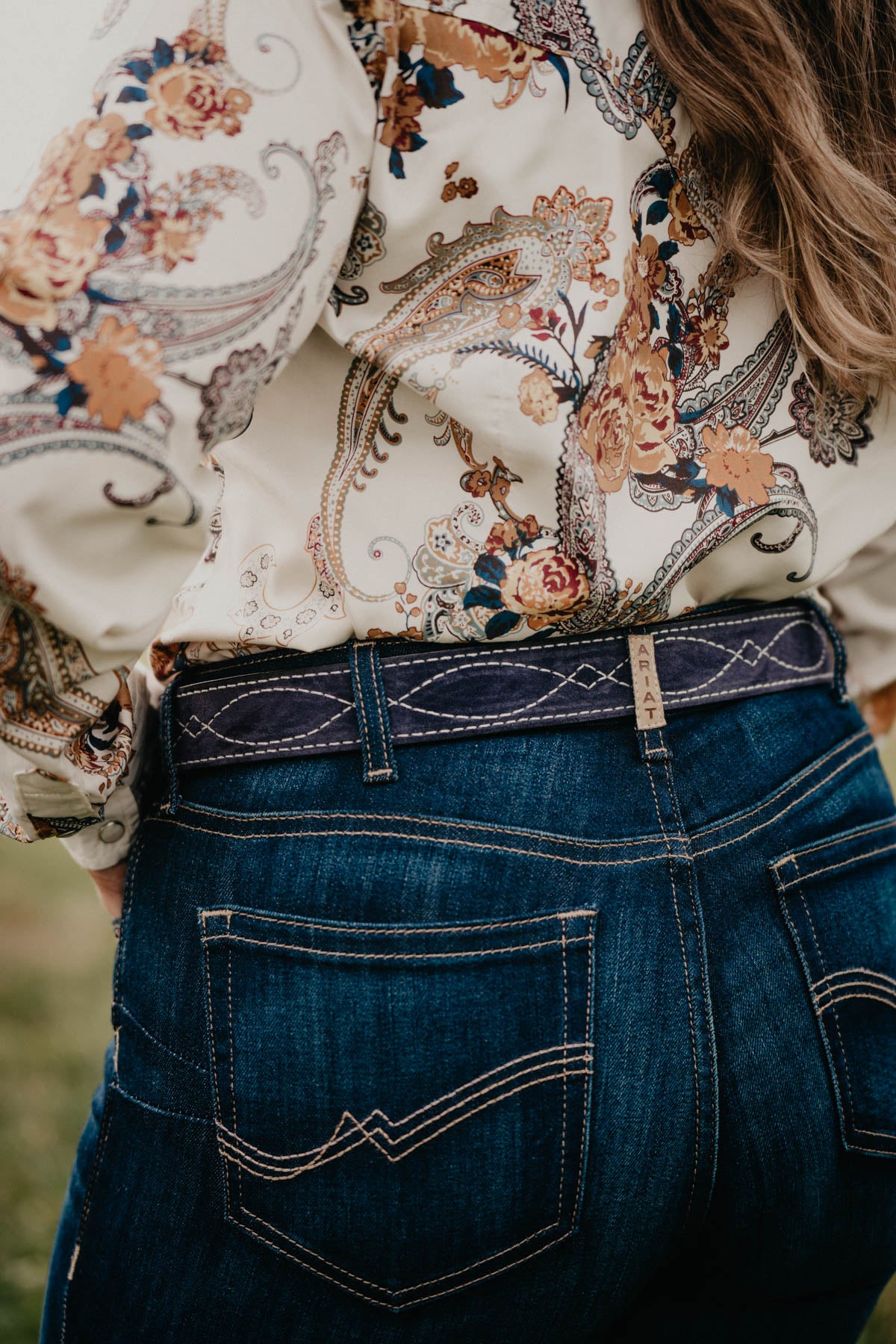 Belt Sizing Tips: Generally speaking, you want to add approx 4" to your denim sizing if you plan to wear with a large buckle, 6" if you plan to wear with existing hardware or a smaller buckle. For example, Tara is a consistent size 27 in denim and comfortably wears a 34" Double J belt with the hardware it come with.