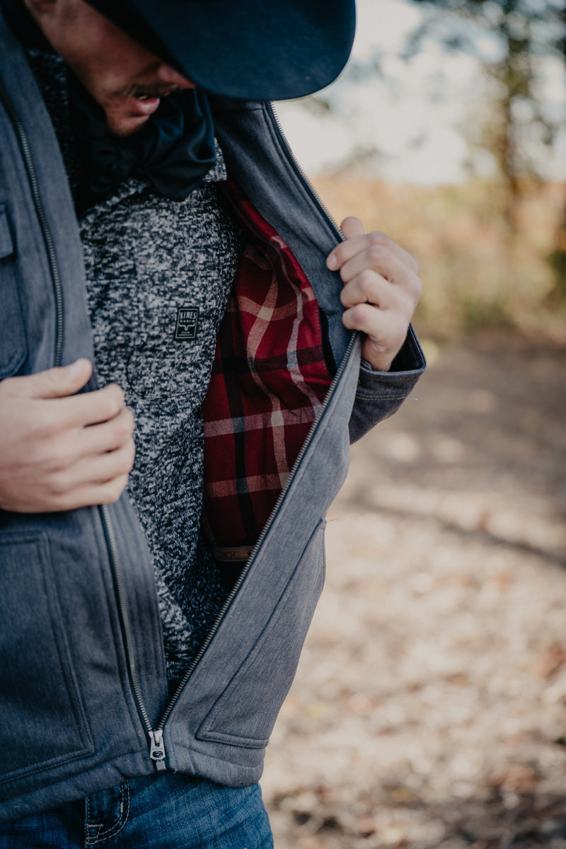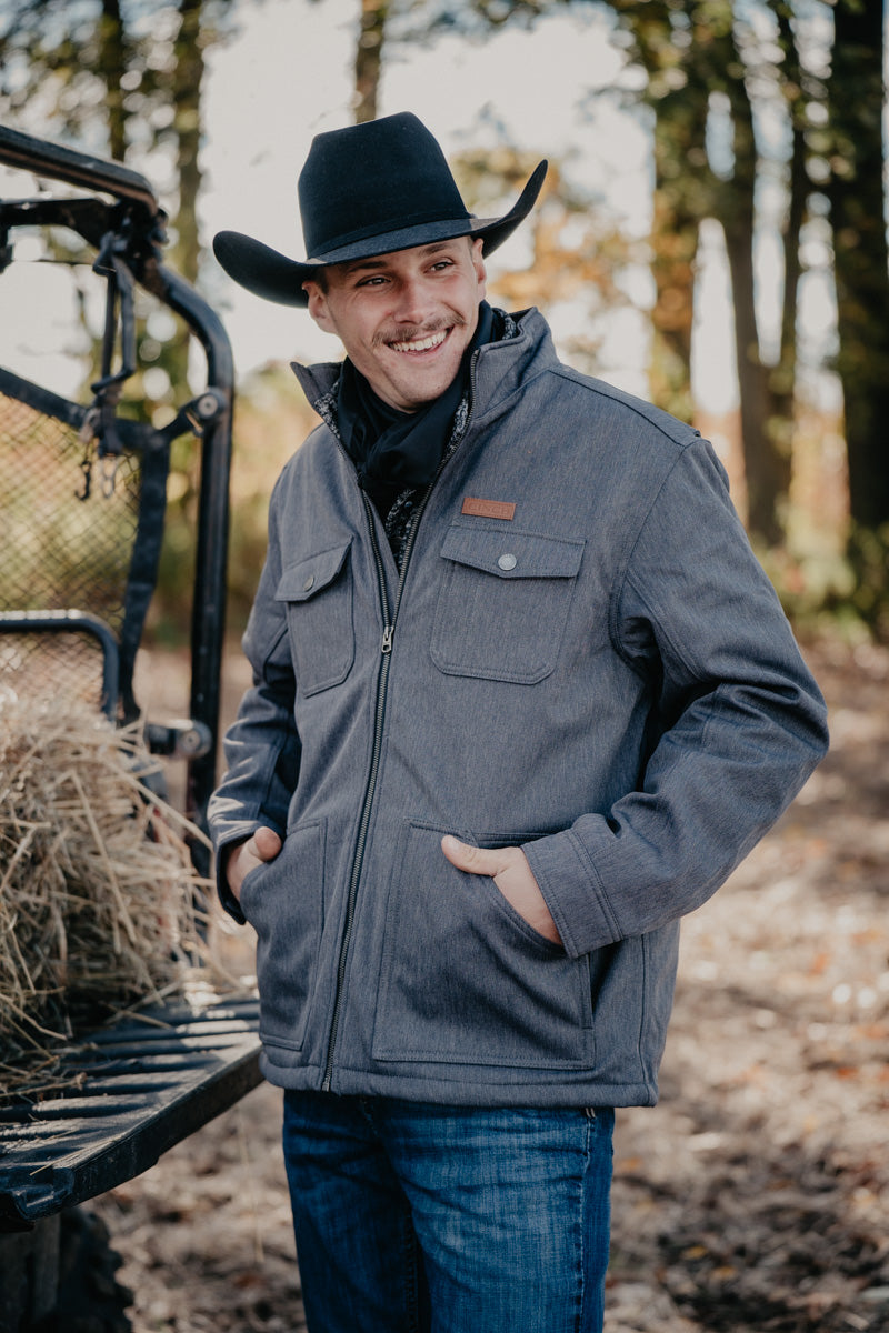 The 'Noah' Black Men's CINCH Bonded Jacket blends style and smarts with a sleek herringbone grey and black design. Ready for anything, it features a concealed carry pocket and double hand pockets with zippers to keep your essentials secure. Stay cozy with a three-layer build—soft flannel plaid lining and quilted warmth—while the storm defense water-resistant finish keeps you dry. Finished with a leather CINCH logo patch, this Fall/ Winter weight jacket is your perfect partner for unpredictable weather and on-the-go adventures!