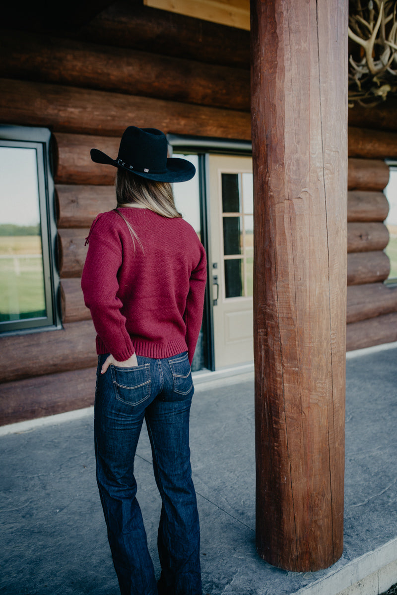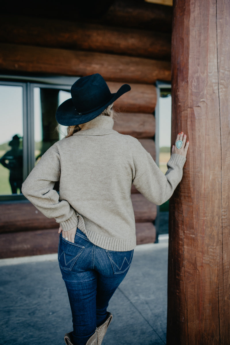 We love these turtleneck sweater with the cascading front fringe. This sweater comes in a beautiful heathered oatmeal and burgundy perfect for fall. The beautiful knit texture is supper soft and the cascading fringe gives this sweater the perfect fall vibe.