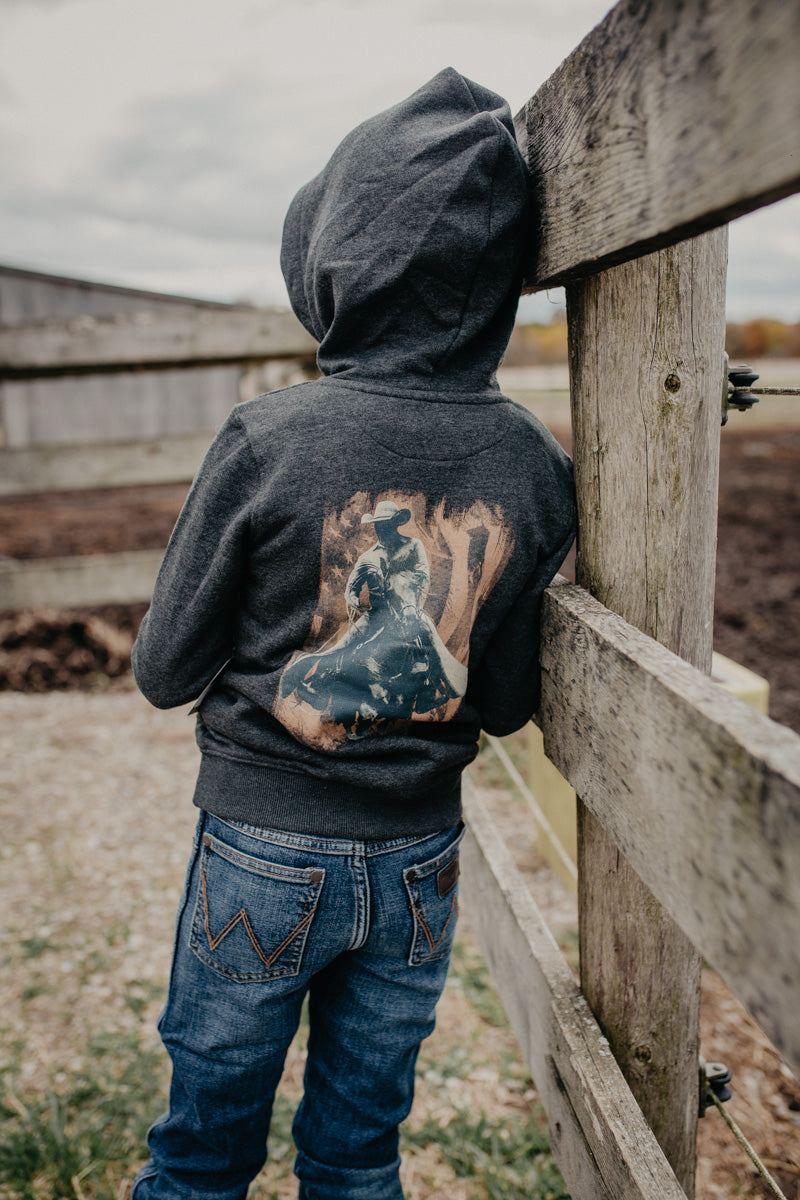 Keep him cozy and adventure-ready with the 'Revel' Boys Hoodie by Wrangler. Made from a soft cotton blend with a brushed-back cowboy print, this pullover is designed to warm him up without slowing him down. The kangaroo pocket is perfect for stashing treasures, while the drawstring hood adds extra snugness.