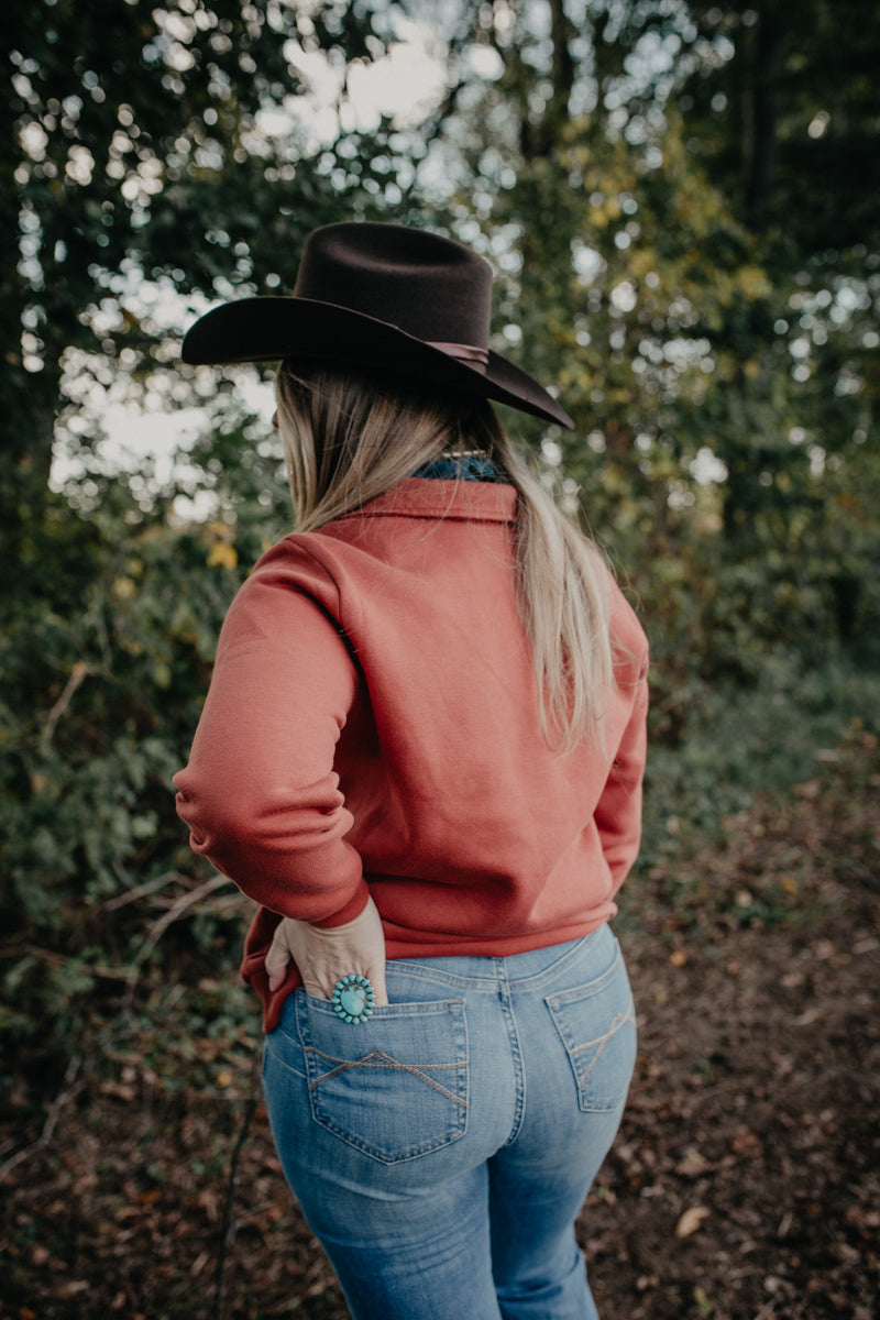 Cozy up with the playful 'Rylee' Rosie Rust 1/2 Zip Pullover! Its lucky horseshoe embroidery adds charm, while the elastic waistband and cuffs keep comfort snug. The warm rusty rose colour makes it the perfect pick for crisp fall days and fun adventures!