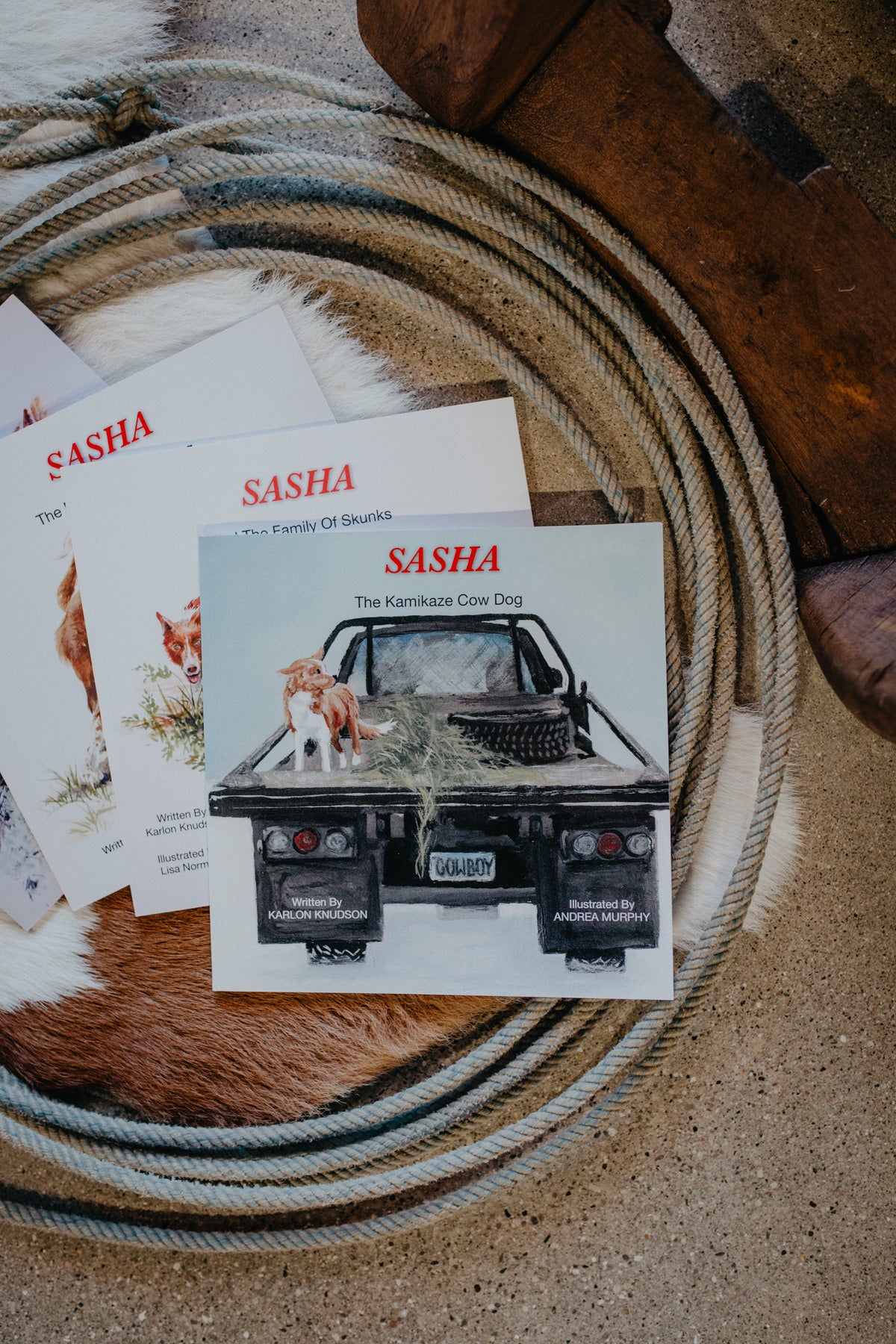 Sasha is a living, breathing dog on a cattle ranch in Wyoming. Her real life antics make up this wonderful kids books series. Join her as she learns the ropes of being a cow dog and the mischief she finds herself in. This children's book series is written by Karlon Knudson and illustrated by Andrea Murphy & Lisa Norman.