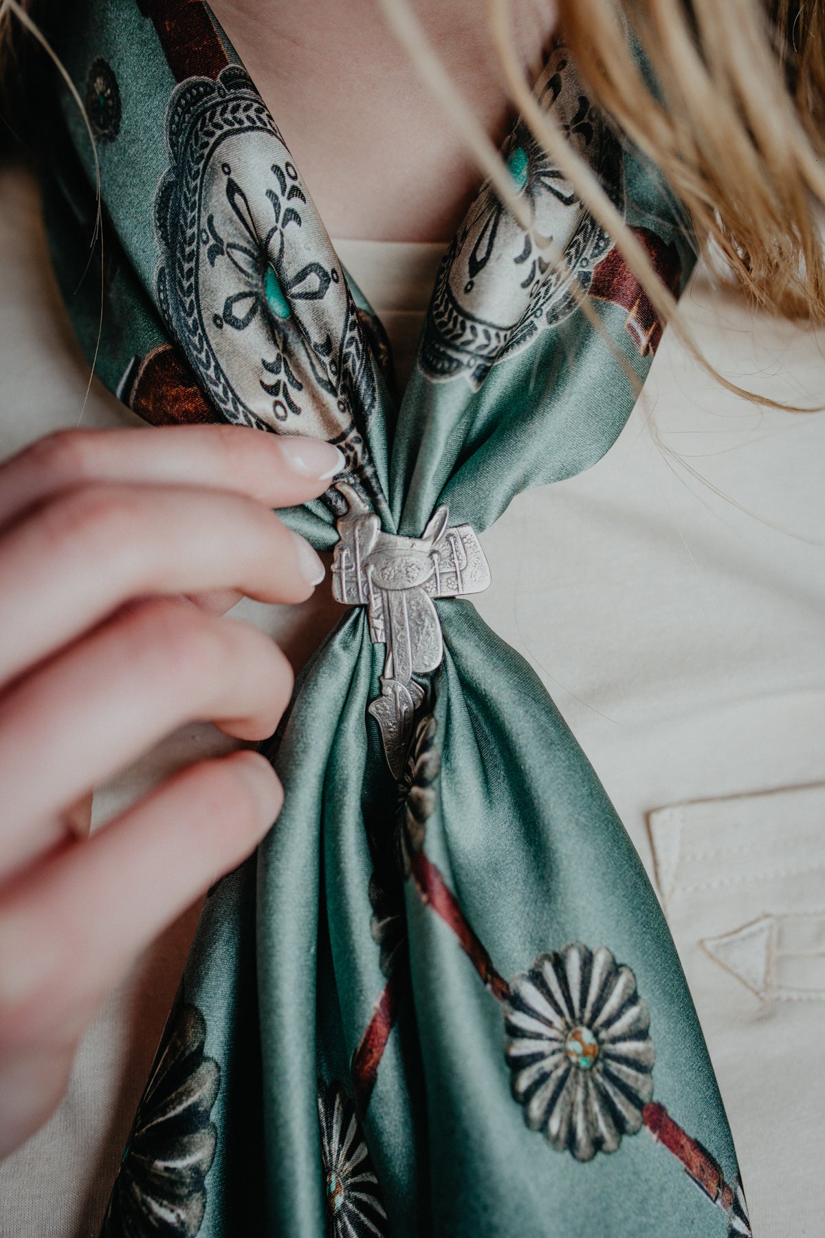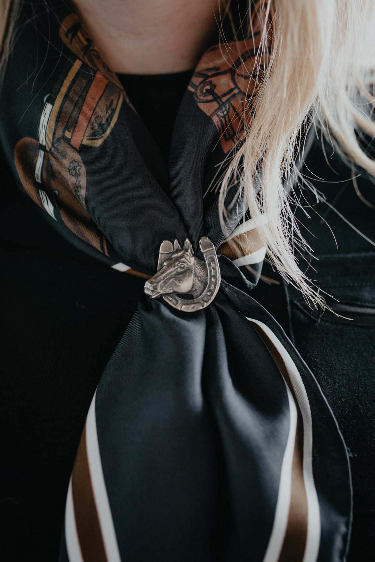 These beautiful German silver wild rag slides are the perfect accessory for your silk scarves and will become a cherished accessory for years to come! Coming in two stunning options; the long saddle and horseshoe head design. These are such a unique little functional accessory that adds a touch of Western styling to any outfit!