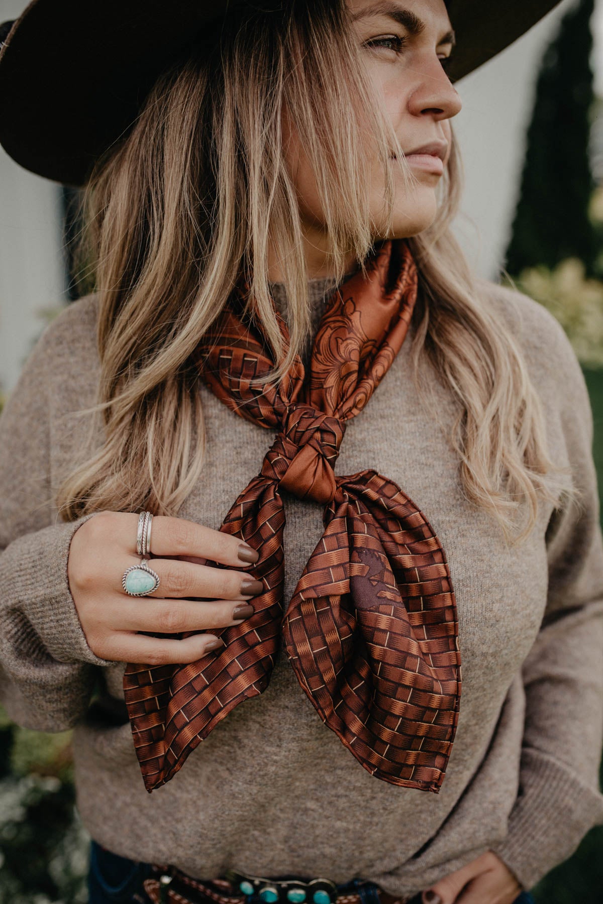 Add warmth and style to your western wardrobe with this stunning genuine silk wild rag 34.5 x 34.5